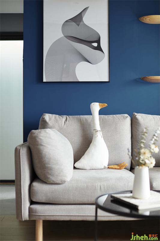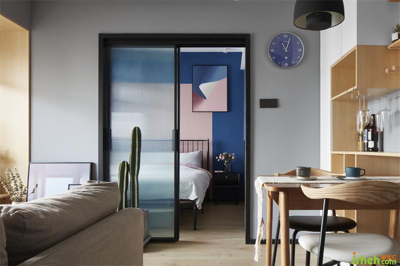 站在客廳望臥室,猶抱琵琶半遮面的情景,是否好有神秘感。背景藍(lán)與粉的結(jié)合直入眼簾,給人安靜及溫馨的畫面。