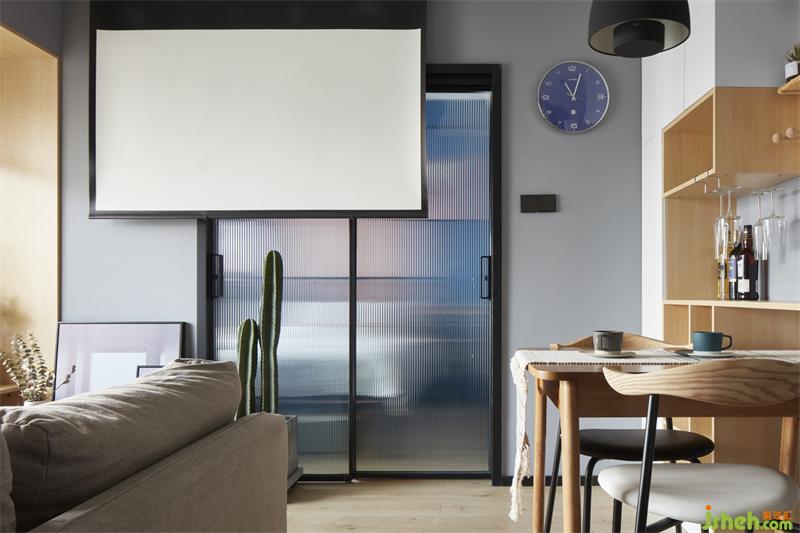 暗藏投影幕布在天花頂,播放時(shí)即可開可合的主臥長(zhǎng)虹玻璃推拉門