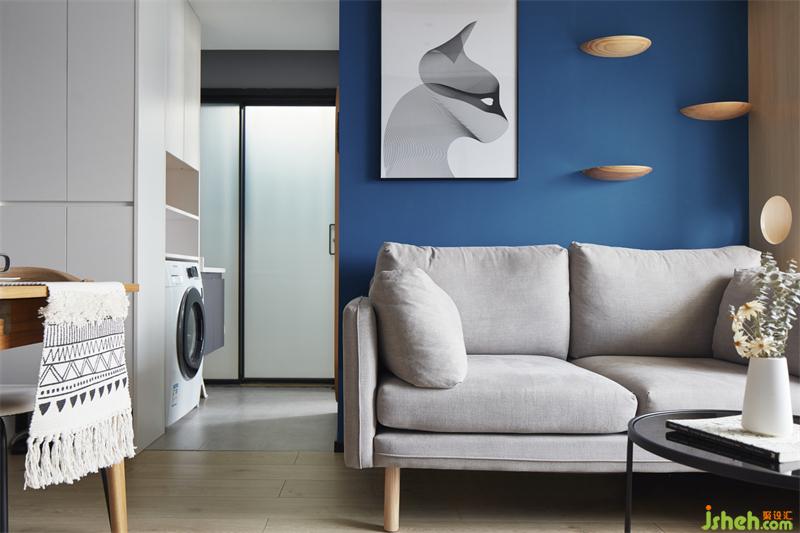 粉色藍(lán)色,猶如晚霞落入余暉。00后的屋主,在色彩的接受程度上比較OPEN,展現(xiàn)出屋主內(nèi)心滿滿小女心哈哈,實(shí)際落地后不空間視覺增加10平不止。