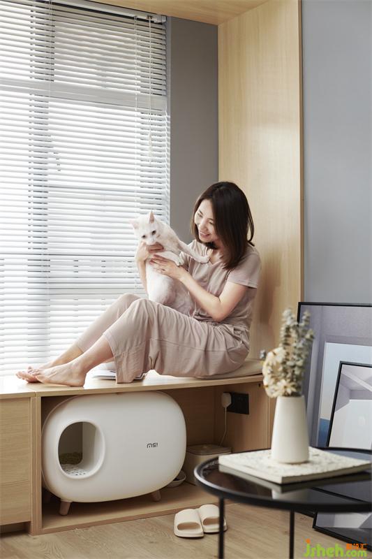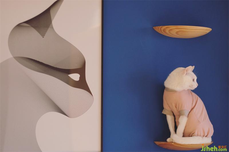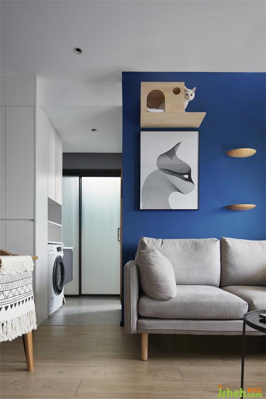 3.客廳靠窗戶做矮柜與高柜收納結(jié)合,也提供屋主的貓咪居所