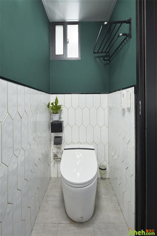 濕區(qū)內(nèi)半墻6邊菱形磚形成一串串音符跟隨屋主一起放松舞動,凸破常規(guī)半墻刷防水漆,時尚干凈