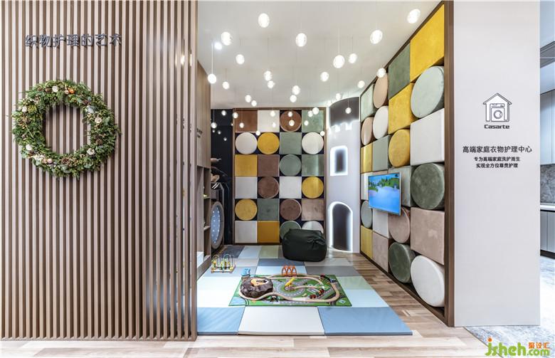 水分子的起伏轉(zhuǎn)化成為懸吊式的光纖燈飾,在兒童區(qū)形成活潑的律動(dòng)層次,滾筒隧道室內(nèi)設(shè)計(jì)師則是以洗滌產(chǎn)品的概念為原型設(shè)計(jì)。順著水渦的流動(dòng)動(dòng)線,顧客最終來到休憩區(qū),感受充滿現(xiàn)代與自然的舒適氛圍。