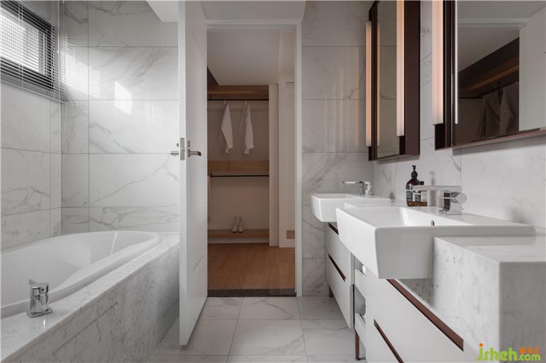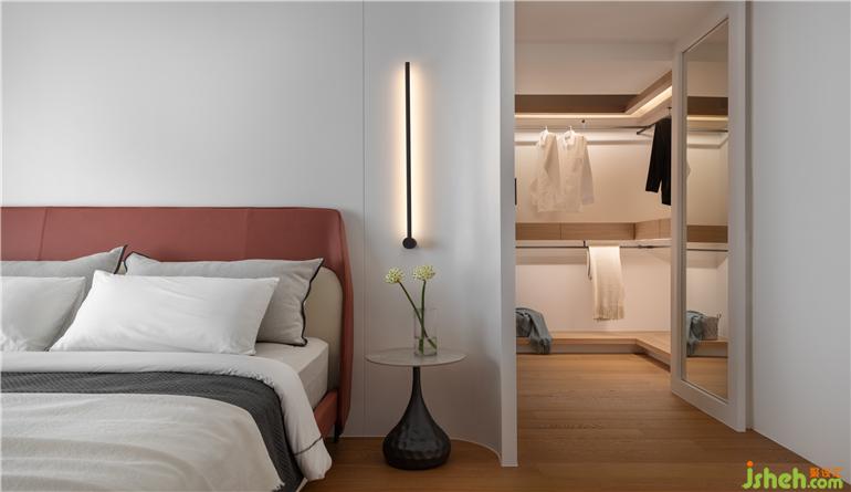 更衣室則利用了房間轉(zhuǎn)角的畸零處,裝修設(shè)計(jì)劃分出一間獨(dú)立精巧的空間,L型格局沿著墻面布局,增加衣物的收納量,平日上班與假日常穿的衣物掛放在這里,趕出門時(shí)順手拿超方便,再放一面全身更衣鏡,每天都亮麗的出門。臥房-更衣室-衛(wèi)浴三者順暢的動(dòng)線,梳洗完就更衣,不會(huì)打擾到在臥室休息的另一半。