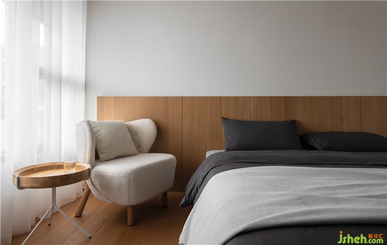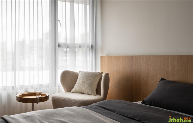 主臥空間劃分為臥房、更衣室、衛(wèi)浴共三室,沉穩(wěn)的風(fēng)格,舍棄過多復(fù)雜的設(shè)計(jì),裝修設(shè)計(jì)僅以自然采光適度點(diǎn)綴。房間的收納同時(shí)規(guī)劃了衣柜和更衣室,2/3面的封閉式衣柜,放置少穿、換季衣物,剩下的1/3面結(jié)合了書桌與開放式展示柜,這里是舒適的追劇小角落,也兼具化妝桌的功能,封閉與開放柜體的融合,形成了一面和諧的晚安端景。