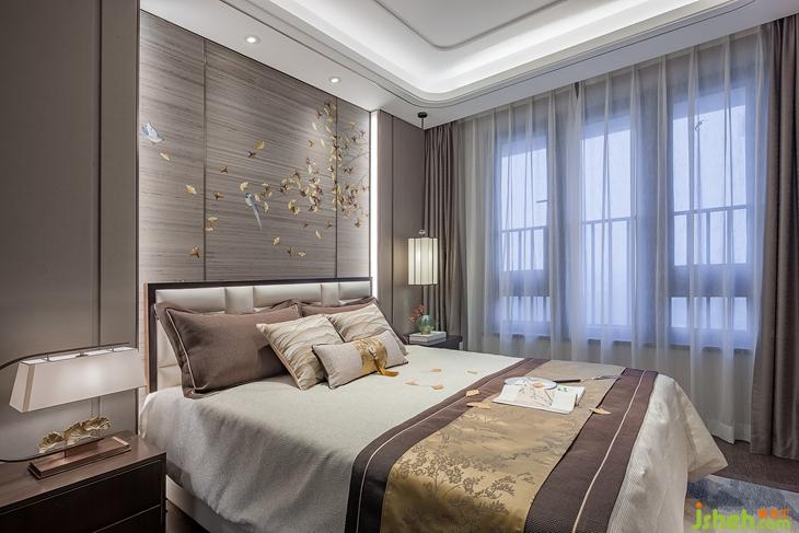 老人房依然延續(xù)了端莊沉靜的東方氣質(zhì),是一個全然放松身心的場所。銀杏元素融入在手繪背景墻和床頭臺燈等細節(jié)中,將和諧長壽的傳統(tǒng)寓意帶入居住空間。懸掛式衣柜搭配木色茶臺,不經(jīng)意的松景和停駐的飛鳥,為生活造境,人類與自然于此交匯相融。
