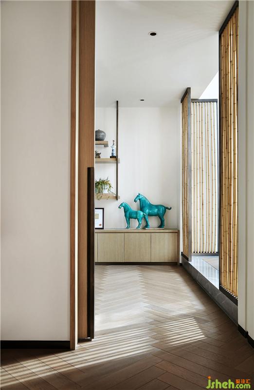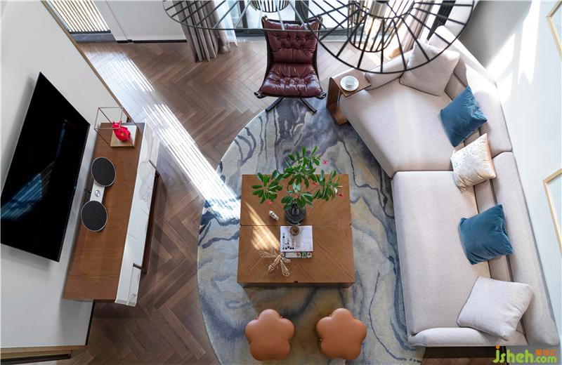 電視柜雅致古樸的線條與地毯水墨紋理一脈相承,為客廳增添了幾分雅致與悠遠。