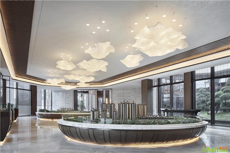 天花飾以肌理涂料增加空間層次感,幾朵起伏有致的水晶荷葉吊燈勾勒于其中,波光粼粼,如一幅水光畫卷徐徐展開,虛靜而澄明,賦予空間樸素純凈的靈性,凝練出當(dāng)代的東方氣質(zhì)。裝修設(shè)計