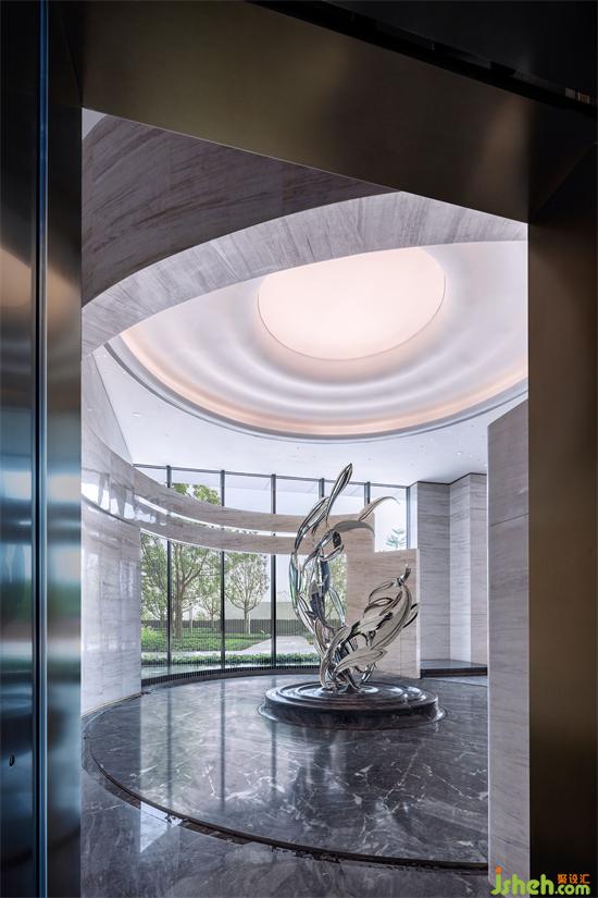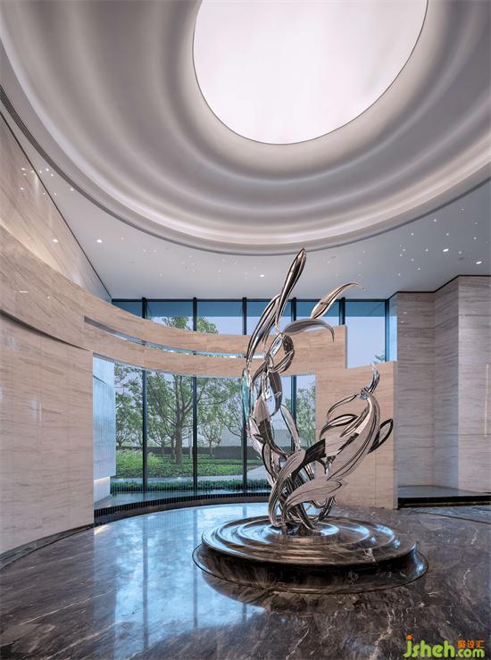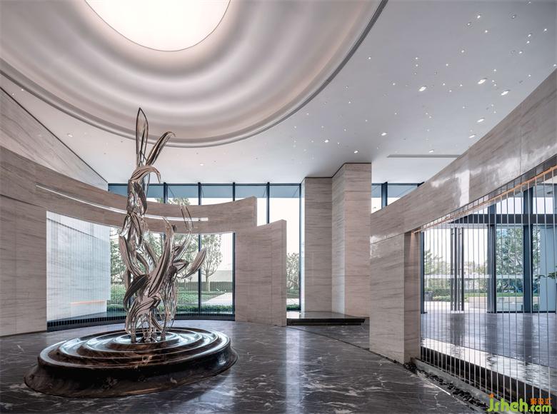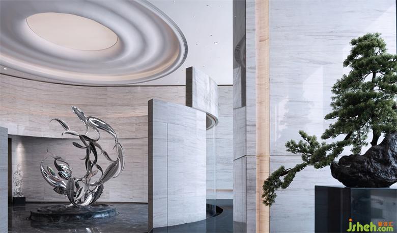 流動(dòng)型墻面塑造的“龍門(mén)”延伸環(huán)繞形成無(wú)界之合,深圳營(yíng)銷(xiāo)中心設(shè)計(jì)與水幕的結(jié)合讓空間增加了神秘與靈透的色彩,虛與實(shí)結(jié)合、動(dòng)與靜相生生發(fā)有趣、自由的聯(lián)想,讓這藝術(shù)一隅成為空間游歷的開(kāi)始,同時(shí)賦予空間勃勃生機(jī)。