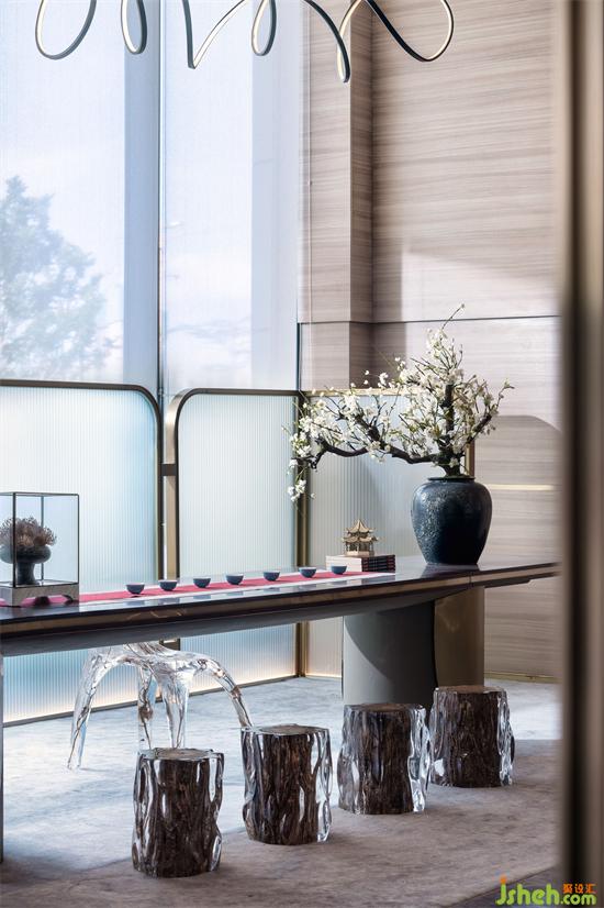 深圳本身就是一座不被常規(guī)定義的城市。深圳營(yíng)銷中心設(shè)計(jì)茶空間串聯(lián)起生活美學(xué)、社交聚友、藝術(shù)休閑等多元形態(tài),賦予空間以城市的包容姿態(tài)。繁忙中相聚,花香裊裊,茶韻繚繞,談話無(wú)拘,構(gòu)建出令人備生好感的生活美學(xué)與休閑空間。
