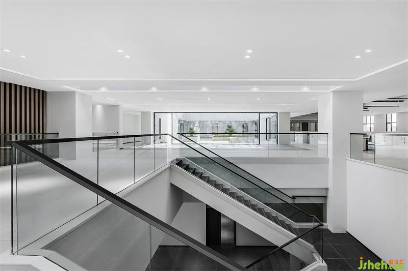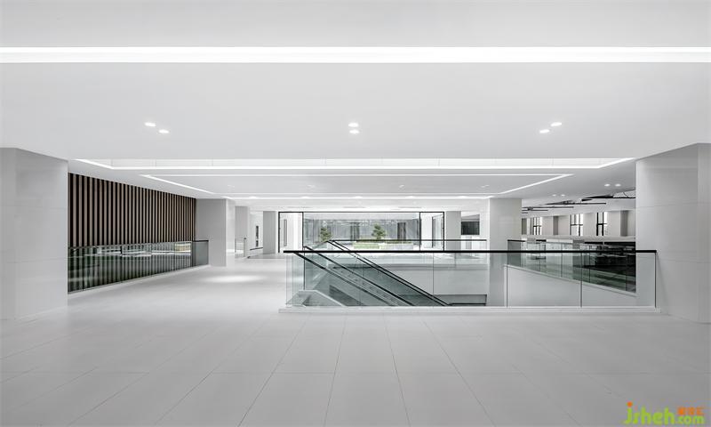 建筑規(guī)劃開(kāi)始我們就充分的考慮新疆地區(qū)充足的日照特點(diǎn),室內(nèi)空間照明白天基本依靠自然采光,陽(yáng)光在空間中不同的時(shí)段的折射的變化帶給空間獨(dú)特而富有變化的視覺(jué)審美,辦公室設(shè)計(jì),華孚時(shí)尚VI中黑,白,灰,紅基本色在空間中被堅(jiān)持貫徹和運(yùn)用,凸顯出企業(yè)品牌價(jià)值和審美,材料運(yùn)用上我們反對(duì)堆砌,這也和華孚品牌價(jià)值觀(guān)相契合,材料品種少而基本的語(yǔ)言搭配同樣可以帶來(lái)不一樣的空間體驗(yàn),我們嘗試用啞光地磚,涂料,玻璃,簡(jiǎn)約而極致的組合,給研發(fā)中心空間注入純凈而輕盈的獨(dú)特氣質(zhì)。