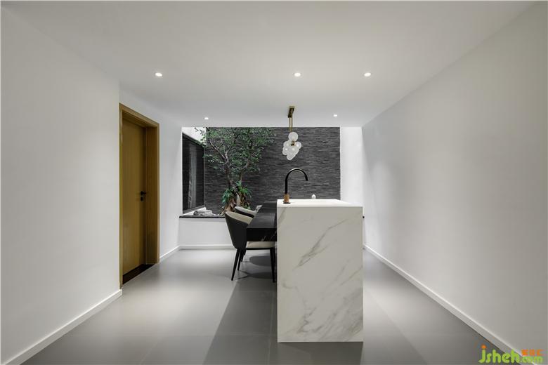 In order to break the limitation of space, the designer opened the sunken courtyard to the second floor, opened the original closed roof, and opened a light well. The lines are capable and powerful, allowing the external light to naturally pour down, illuminate the interior, and make The entire space has obtained a free breathing pillar.