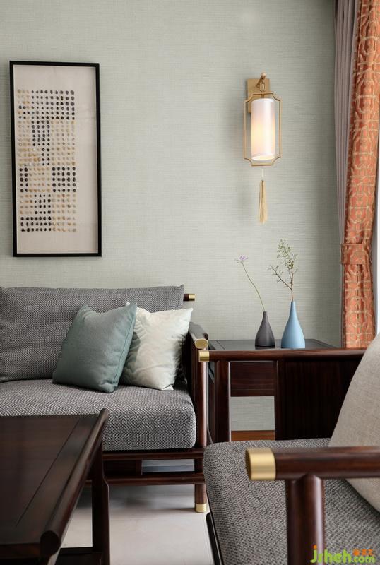 中式家具講究對稱,中矩,色彩上多采用樸素穩(wěn)重的顏色,所以在前期硬裝設計的時候就做了好鋪墊,整體墻面選用雅致亮色系做鋪墊。除了家具和局部柜體選擇了深色系,其他用色都相對明朗。