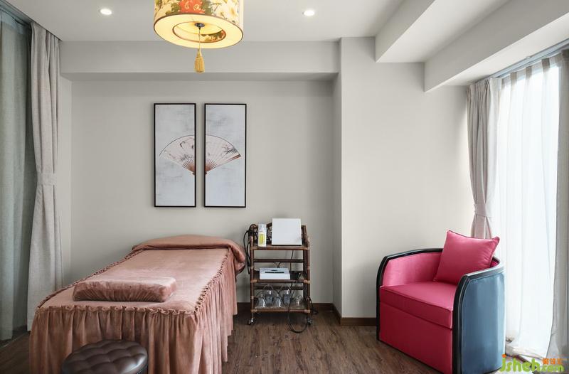 因為是女性養(yǎng)生會所,因此選擇了白色的墻壁搭配粉色系的床和單人沙發(fā),整個空間和諧統(tǒng)一,賦予一種小資感,令來訪的客戶可以得到片刻的寧靜和享受。