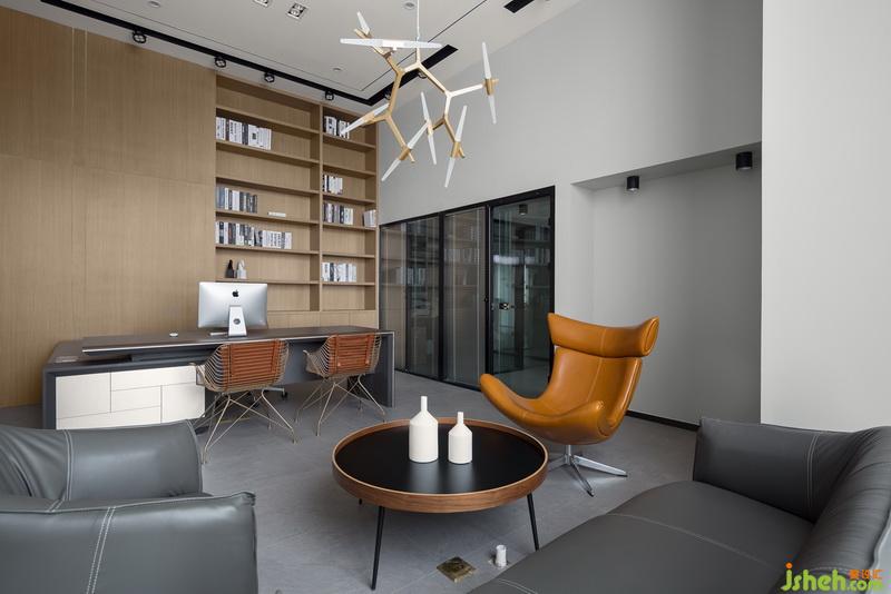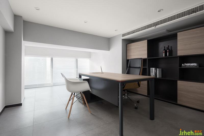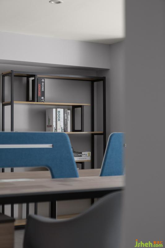統(tǒng)一的現(xiàn)代設(shè)計(jì)風(fēng)格,色調(diào)大氣,線條簡(jiǎn)潔,局部的藍(lán)給人穩(wěn)重舒適感。線條簡(jiǎn)約的書架,讓空間落落大方。