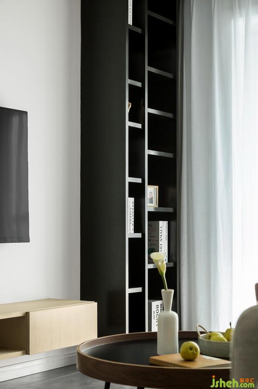 電視柜和裝飾柜為壹石現(xiàn)場制作,除增加收納功能以外,黑色裝飾柜也給簡潔的空間多了一份硬朗。在設(shè)計(jì)上的色調(diào)搭配,過多的深色會(huì)讓人產(chǎn)生壓抑,而如果沒有深色相稱也就反襯不出質(zhì)感,正是顏色有深淺、明暗有變化。