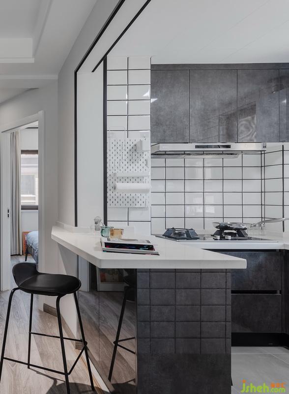 對于經(jīng)常外出覓食,偶爾到父母家蹭飯,不經(jīng)常開火的90后而言,開放式廚房和吧臺是一種情懷。早上煎蛋,面包牛奶,書房工作累了跑來泡一杯咖啡坐坐,這是他的生活。
