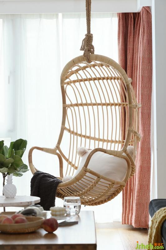 設(shè)計說:喜歡隨性自在的生活,所以在居住空間上也想追求自由自在的感覺,想在休憩的午后,閑暇的時光,躺在吊椅里,窩在懶人沙發(fā)上,坐在陽臺的小書房里泡一壺茶,看一本書或看一部喜歡的電影,享受當(dāng)下生活的愜意。