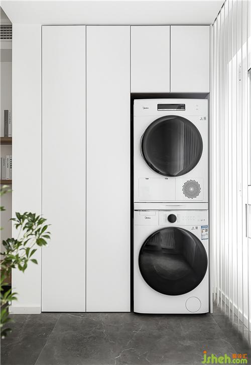 陽臺收納柜和洗烘機的結(jié)合。