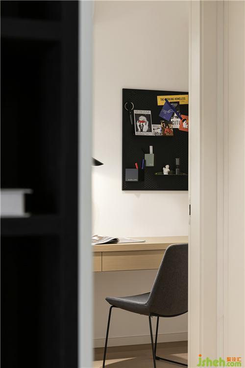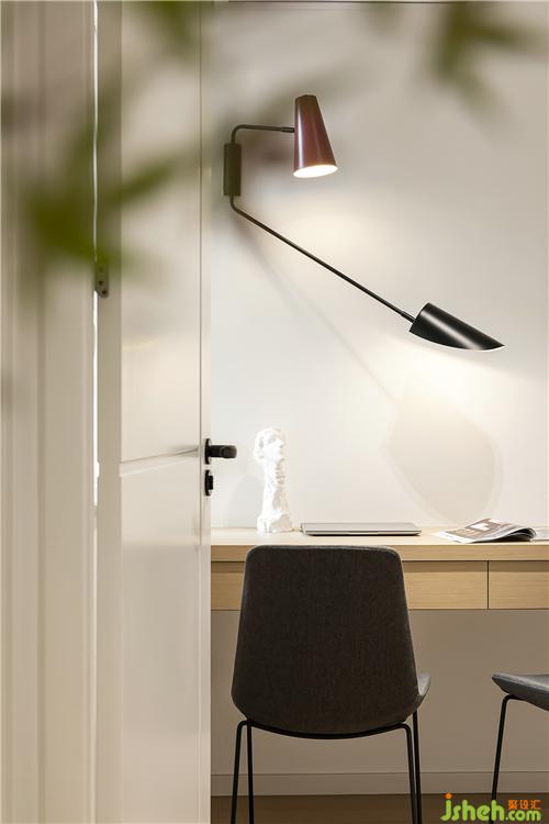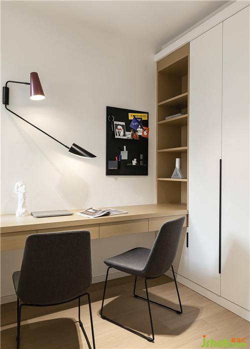 書房的懸掛式書桌,與柜體自然銜接,形成一體南京裝修設(shè)計(jì)。