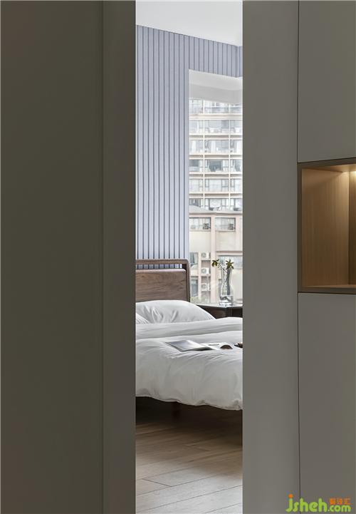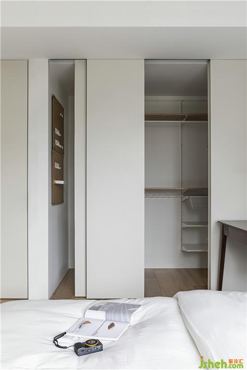 想要一個(gè)衣帽間。采用金屬置物架的方式 ,可自由調(diào)節(jié)衣物規(guī)劃區(qū), 配合吊軌移門的形式,打造一個(gè)精致的步入式衣帽間。