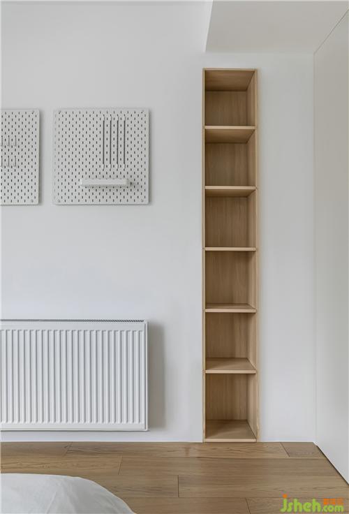 小朋友的臥室,留有一角嵌入柜放置想要展示的物件,南京裝修設(shè)計(jì)還有一個(gè)洞洞板留著給孩子發(fā)揮。