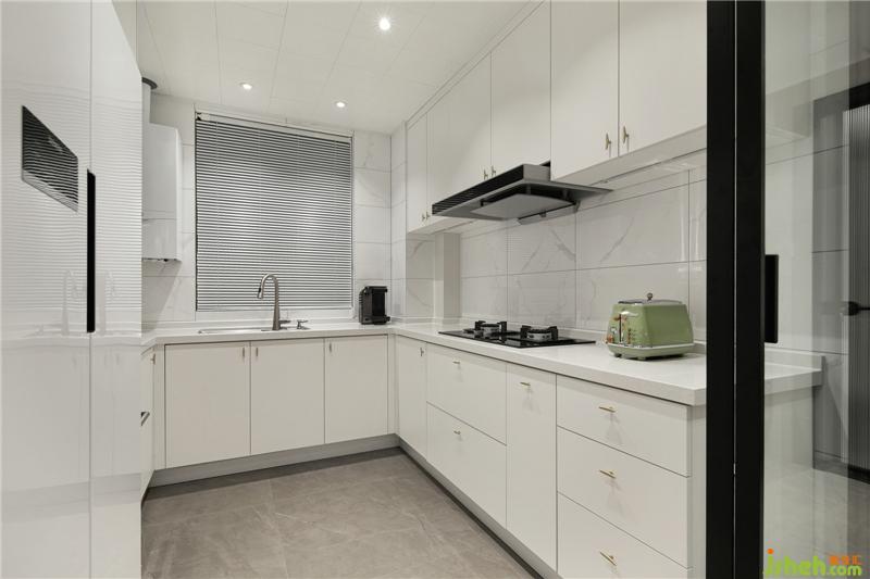 廚房U型櫥柜,乳白色干凈明亮,搭配精致的柜門(mén)小把手,細(xì)節(jié)見(jiàn)品質(zhì)。