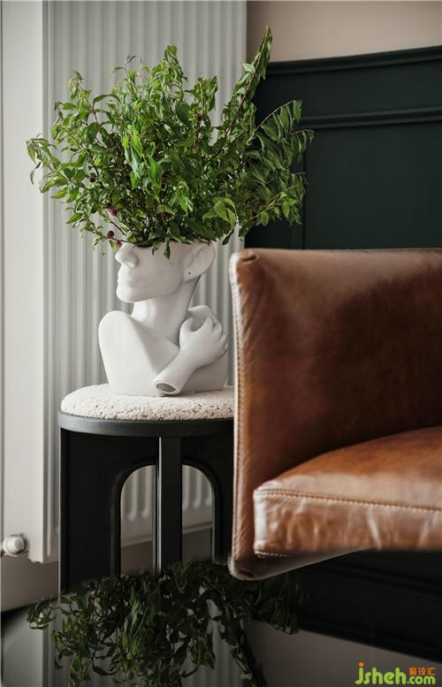 沙發(fā)邊幾用藝術(shù)花瓶稍作點綴,時而可以來些綠植鮮花裝扮,給生活多加些喜愛的色彩。
