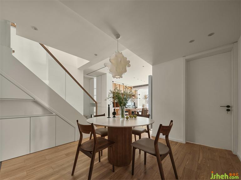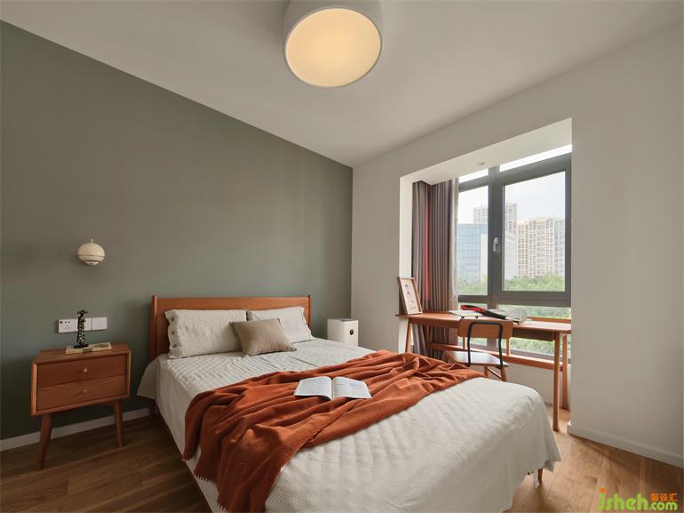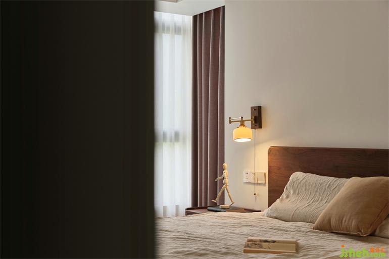 臥室以質(zhì)從簡,樸素的木質(zhì)床,復(fù)式裝修設(shè)計搭配棉麻質(zhì)感的床品,兩盞床頭燈營造寧靜的閑適。