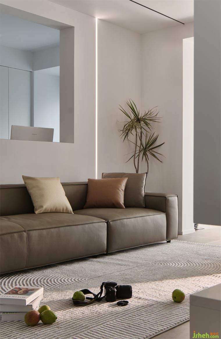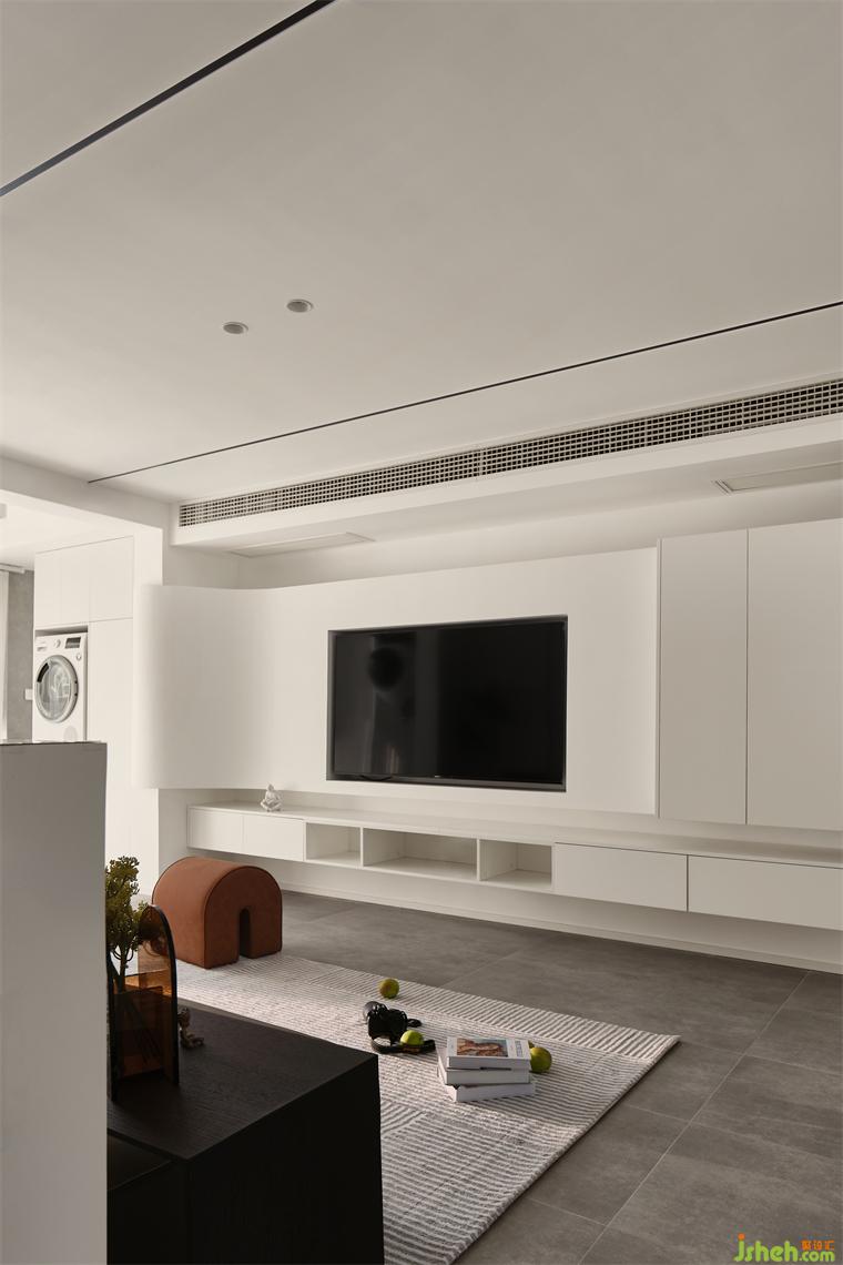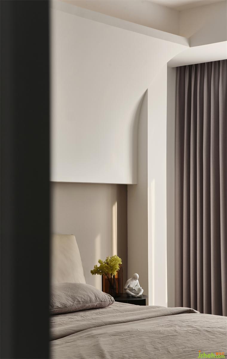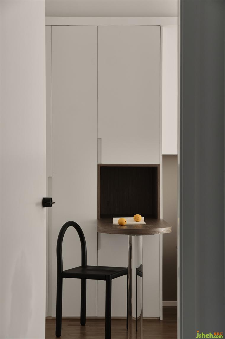 極簡(jiǎn)空間流露小巧思,為女主在主臥現(xiàn)場(chǎng)制作了簡(jiǎn)潔梳妝臺(tái),裝修設(shè)計(jì)梳妝臺(tái)與衣柜一體,整個(gè)空間都因它而變得生動(dòng)。