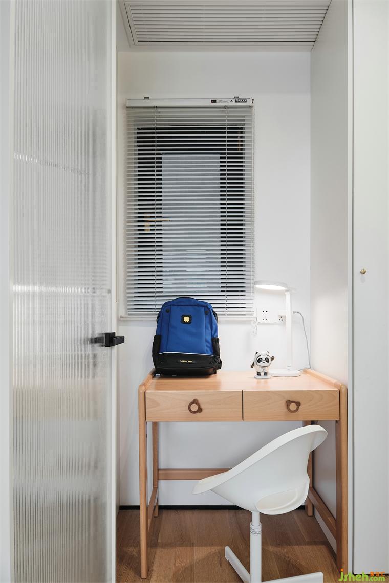 上下鋪設(shè)計(jì),小樓梯也是儲(chǔ)物格子柜。采用木白搭配,裝修公司局部的藍(lán)色點(diǎn)綴,恰好的寧?kù)o。