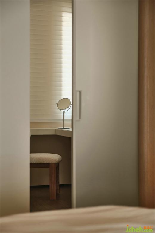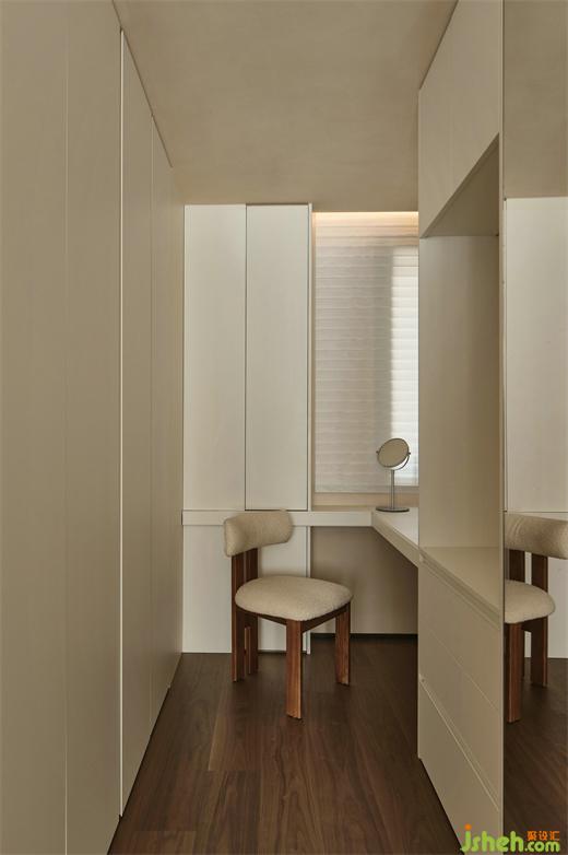 主臥原衛(wèi)生間改為衣帽間,書桌臺(tái),部分柜門做成了鏡子,設(shè)計(jì)實(shí)現(xiàn)了更理想的生活狀態(tài)。