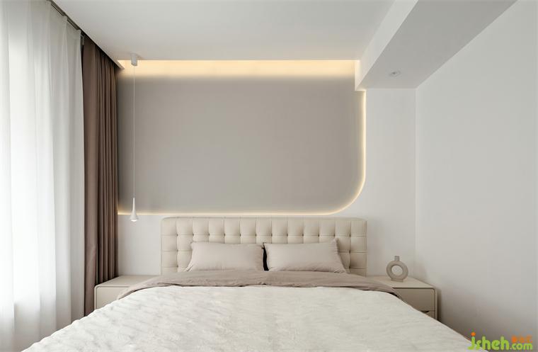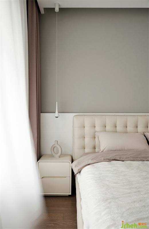 主臥出色的床頭設(shè)計(jì)為整個(gè)房間錦上添花。臥室適度的暖色調(diào),精裝房改造柔美又利落的線條,一盞精致的吊燈,整體空間顯得浪漫又寧靜舒適。