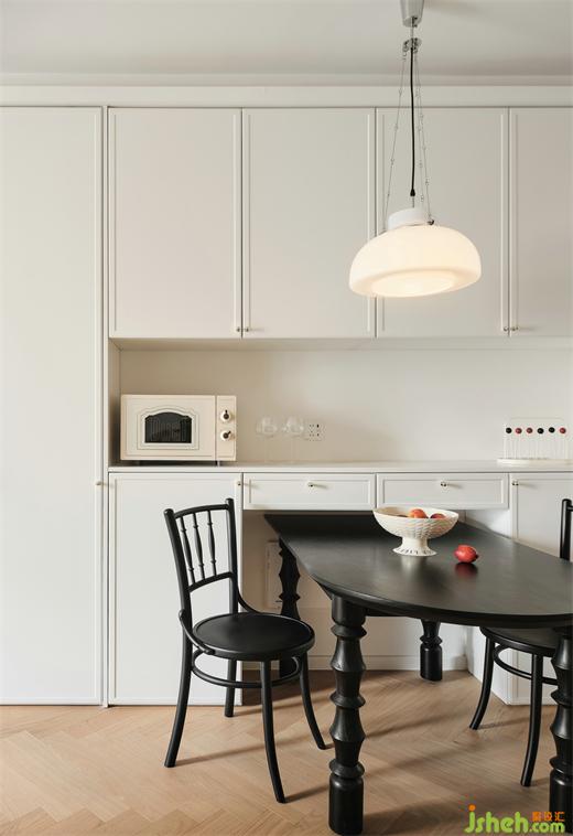 餐廳采用柜體收納式,餐桌嵌入式,增加收納又可以滿足三五好友來(lái)聚餐,秒變大長(zhǎng)桌的實(shí)用性。