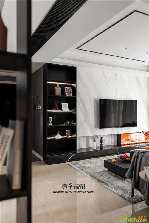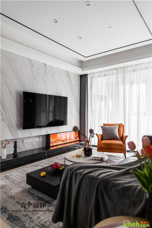 3:將電視背景墻做成大理石,擴(kuò)大客廳空間感