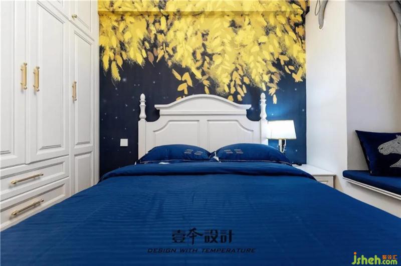 深藍(lán)色的沉穩(wěn)大氣,有著令人安心的力量。金色落葉點綴著神秘的深藍(lán)星空,讓空間生動起來。
