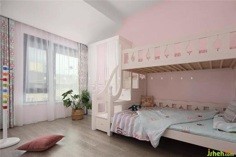 兒童房是小女兒的專屬小天地,只有這個空間沒有使用灰色,采用了滿滿的粉色,希望她的童年甜甜蜜蜜快樂成長。