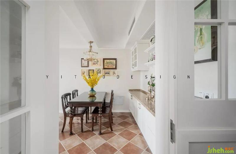 餐廳通往客廳處設(shè)計(jì)了獨(dú)特的門連窗,既不影響采光,又解決了業(yè)主對(duì)油煙的擔(dān)心