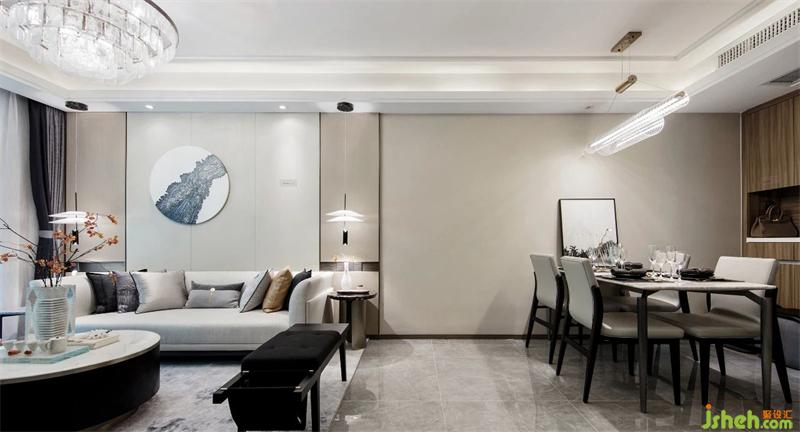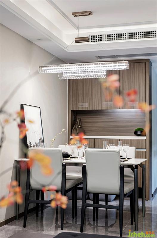 空間布局決定著功能性與舒適性的平衡,通過材質(zhì)劃分功能屬性的差異,配以空間高度的微妙變化,使得客廳與餐廳空間融會貫通的同時,又互相獨立開來。