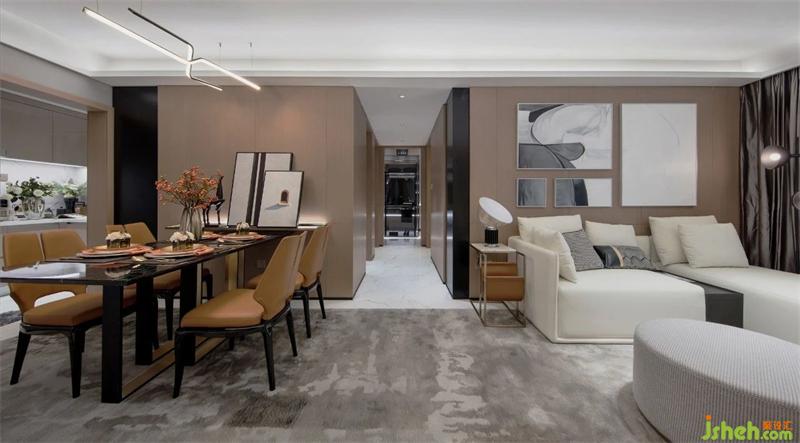 基于地鐵綜合物業(yè)形態(tài),樣板房設(shè)計(jì)師將該項(xiàng)目命名為“都市故事發(fā)生地”。簡(jiǎn)潔的造型線條和內(nèi)斂的色調(diào),帶有男性審美偏好的場(chǎng)景設(shè)置,在造價(jià)控制范圍內(nèi)完成氛圍營(yíng)造。