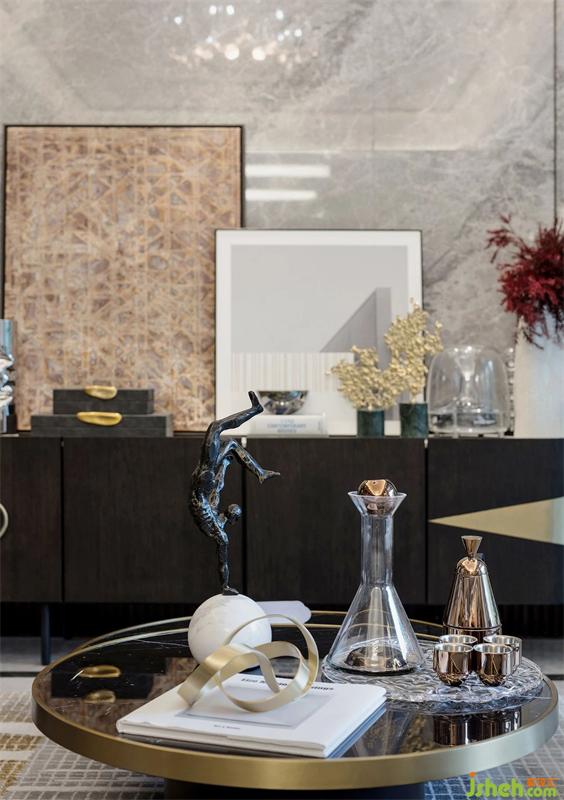 武漢樣板房設(shè)計(jì)造型與細(xì)節(jié)低調(diào)地詮釋出對(duì)生活的熱愛(ài)。線面結(jié)合的天花有妙不可言的靈動(dòng)感,自然肌理的大理石墻面;精致的黃銅烤漆茶幾、紋理豐富的地毯、紳士品格的皮革沙發(fā)與空間相互呼應(yīng),增添生活儀式感。