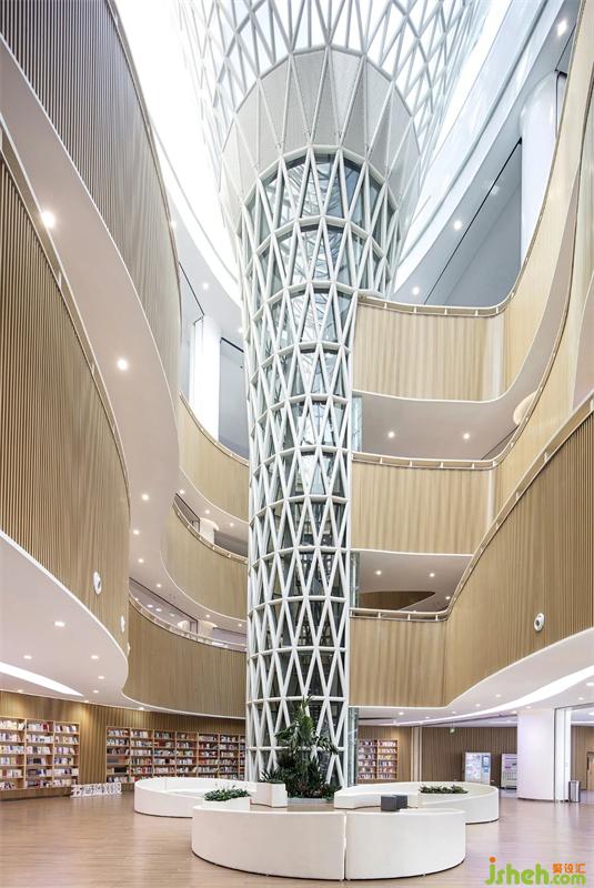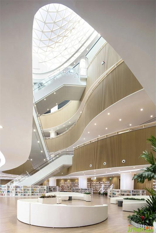襄陽市圖書館新館,位于東津新區(qū),是一所集藏書、閱覽、信息處理、學(xué)術(shù)交流、新媒體示范、推廣應(yīng)用為一體的綜合性現(xiàn)代化場館。圖書館設(shè)計以繁華喧鬧城市中的自然靜謐空間體驗為設(shè)計主旨,在借助光與線條塑造空間優(yōu)美造型的同時,注重地域純樸人文、自然、人性化的細節(jié)融入。