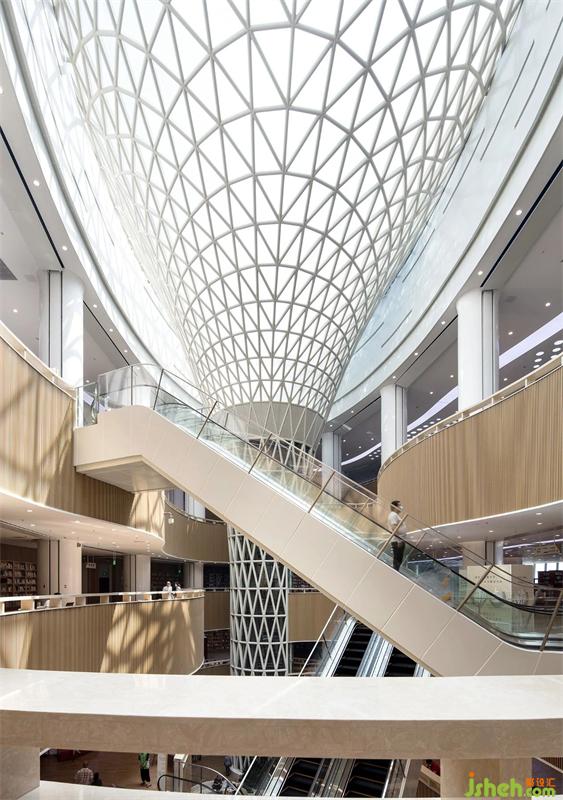 自然的光借著季節(jié)推移,透過建筑空間,讓人感受到細膩光線變化賦予空間不同的氣氛,就像文化歷史長河的流淌,讓空間記錄萬象。白色天空,輕盈的線性光帶,宛如“漢水”在空間流淌,帶來緩緩生機。