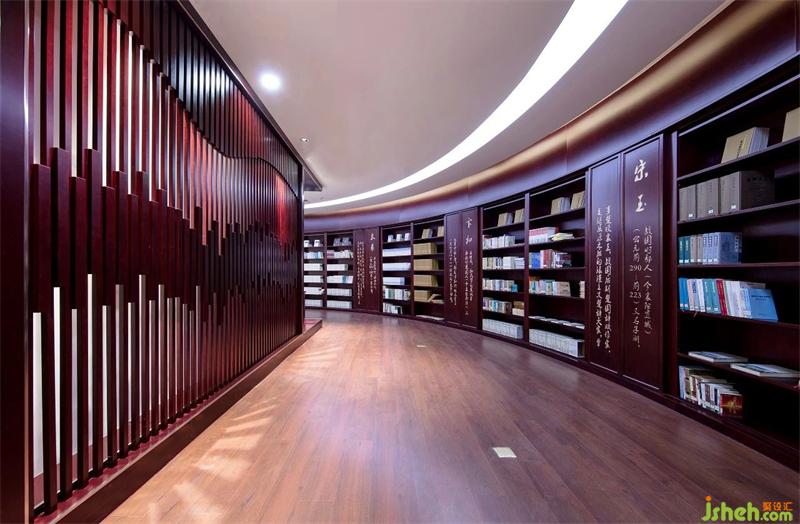 歷史文化長(zhǎng)河環(huán)形流淌,熠熠光輝照亮墻面“書簡(jiǎn)”般的藏柜,每本書籍都如篆刻的文字,以古樸的空間,記載傳承。