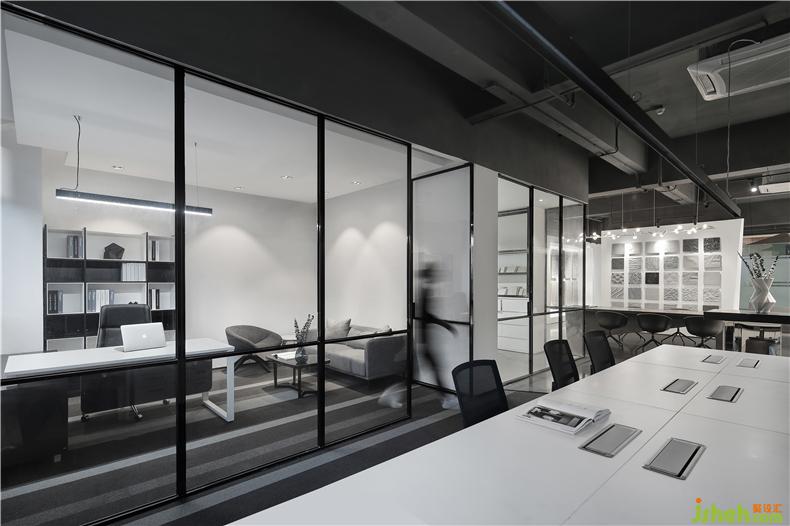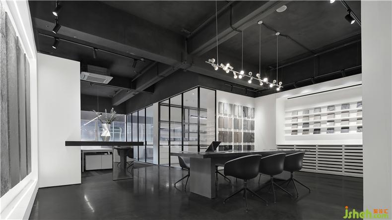 空間的大體色調(diào)最終確定為黑白。在呈現(xiàn)的姿態(tài)上,室內(nèi)設(shè)計師并不作富有視覺沖擊力的切割,不刺激眼球,作為背景畫布存在,旨在凸顯空間體驗和產(chǎn)品