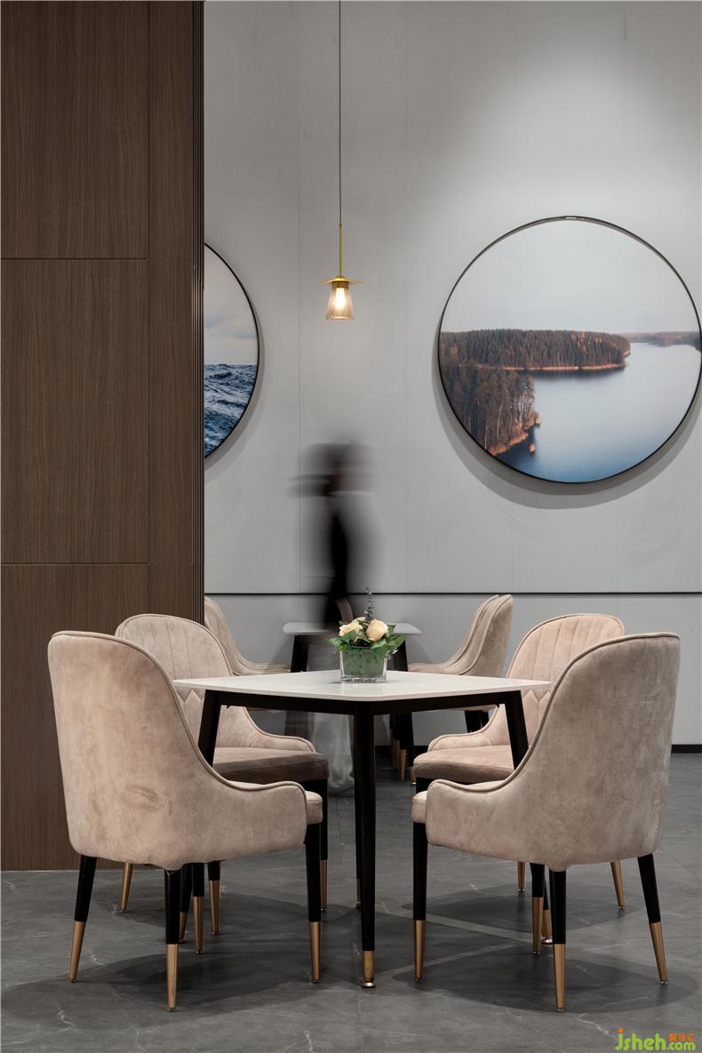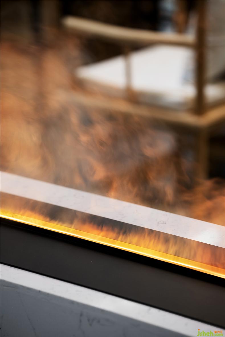每一次步伐的切換,都是全新的功能視覺呈現(xiàn)。果實燈的指引,欣然揭開餐飲空間的序章。酒店設(shè)計我們通過藝術(shù)掛畫與壁爐,將森林、海洋、峽谷、冰雪、火苗等自然元素融入其中,現(xiàn)代場景與自然美景之間邊界消弭,設(shè)計風(fēng)格變得柔和模糊,包容變化,詩意盎然。