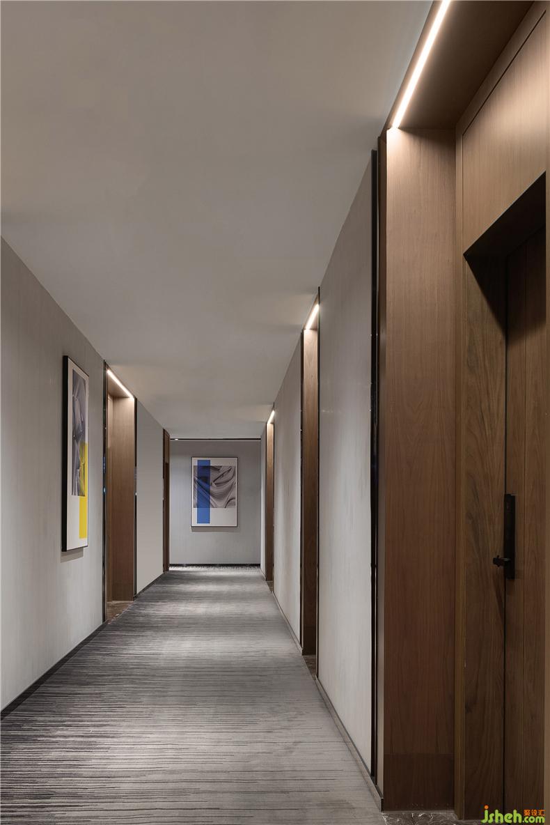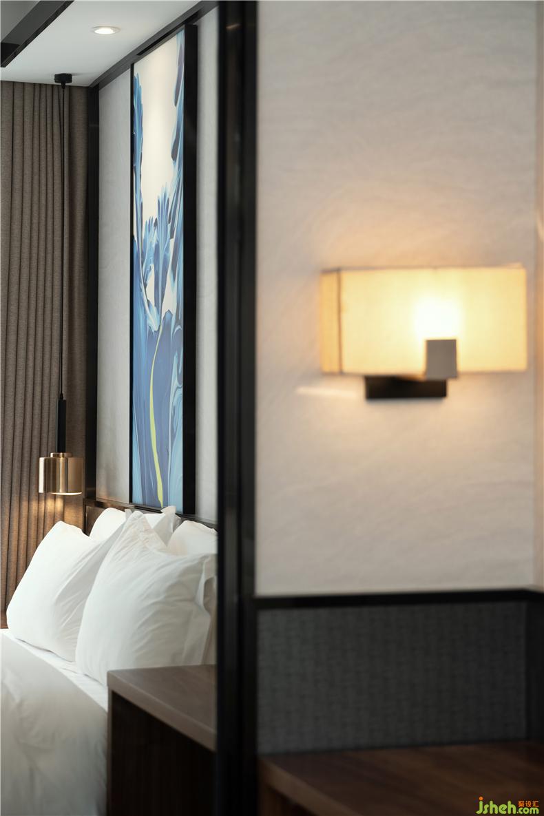 不同層次與質(zhì)感的灰、白、黑相互交融,在燈具和家具的局部,克制地點綴了金色、藍色、紫色,酒店設(shè)計現(xiàn)代奢意與自然靈動在空間中游走,沉淀出游刃有余的愜意與從容氣質(zhì)。