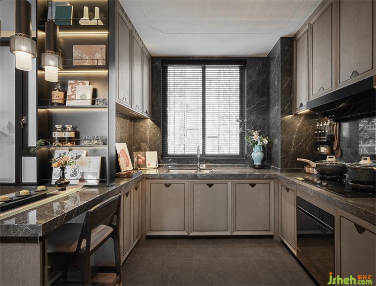 水吧臺(tái)、廚房以一體化設(shè)計(jì)打造,視覺(jué)更開(kāi)闊,同時(shí)也促成與餐廳區(qū)域的彼此互動(dòng),增添了家人間的交流。
