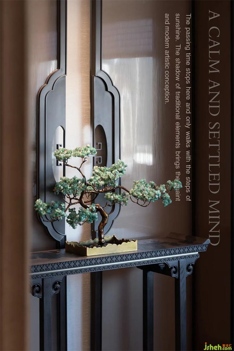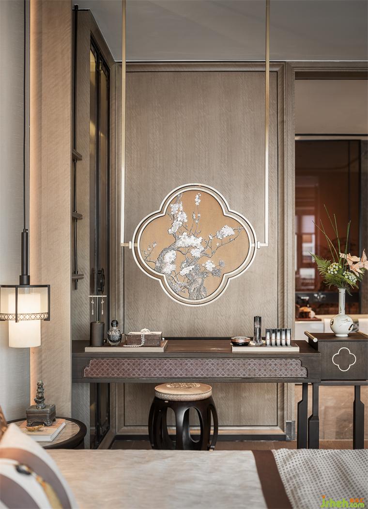 繁盛的花墻、桌椅鏡柜的設(shè)計,或方或圓的器物形態(tài),樣板房設(shè)計都用了考究的工藝進行處理,在空間中不搶戲、卻很出彩。