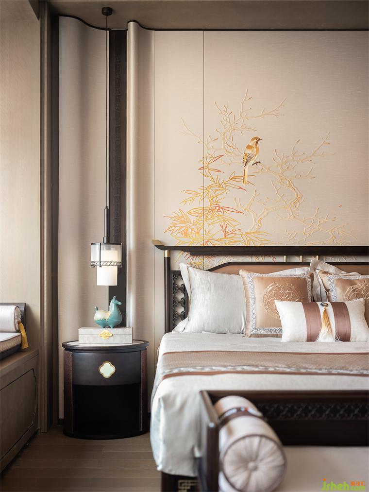 舒適的格局與柔和的調(diào)性渾然一體,還原長輩房一個溫馨且富含韻味的空間。天青色與琥珀色的邂逅,別具一格,不落俗套,樣板房設(shè)計將雅致東方情韻彰顯得恰到好處。于碧青小夢中,于梅香馥郁間,聆聽空間與心靈的淺吟輕談。