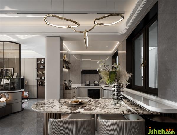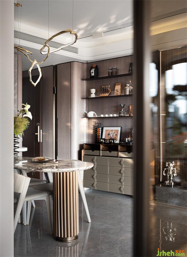 餐廳主張以少勝多,以簡勝繁,用線條與光線特有的刻畫力和裝飾的韻力,線條切割的起伏面隨光線變換,而帶來明暗漸變的視覺沖擊,賦予空間獨一無二的個性,樣板房設計豐富空間的層次感與內(nèi)涵。